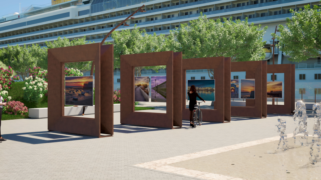 La Puerta del Mar, que se conserva como reseña histórica, se convertirá en el acceso principal a la actuación en el Muelle Ciudad. Frente a ella se dispone un espacio que, concebido como una prolongación de la Plaza de San Juan de Dios, estará presidido por dos fuentes transitables, existiendo la posibilidad de instalar junto a ellas exposiciones al aire libre sobre la historia del Puerto de Cádiz.
