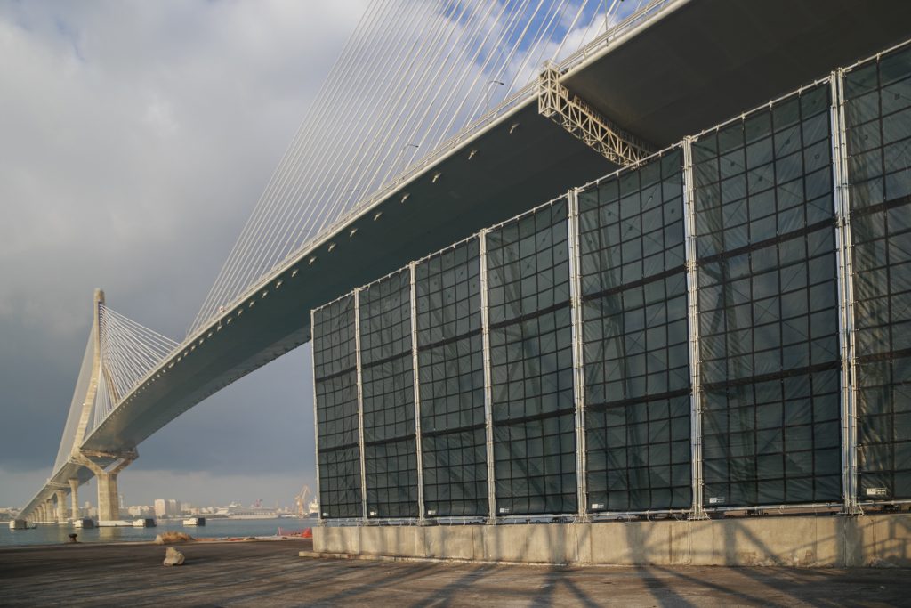 Martes, 19 de enero de 2021. La construcción de las nuevas pantallas de protección para la manipulación de graneles en la dársena de La Cabezuela-Puerto Real ha alcanzado esta semana su último hito con la colocación de la malla especial de protección que evitará la propagación del polvo en suspensión durante las labores de carga y descarga de la mercancía.