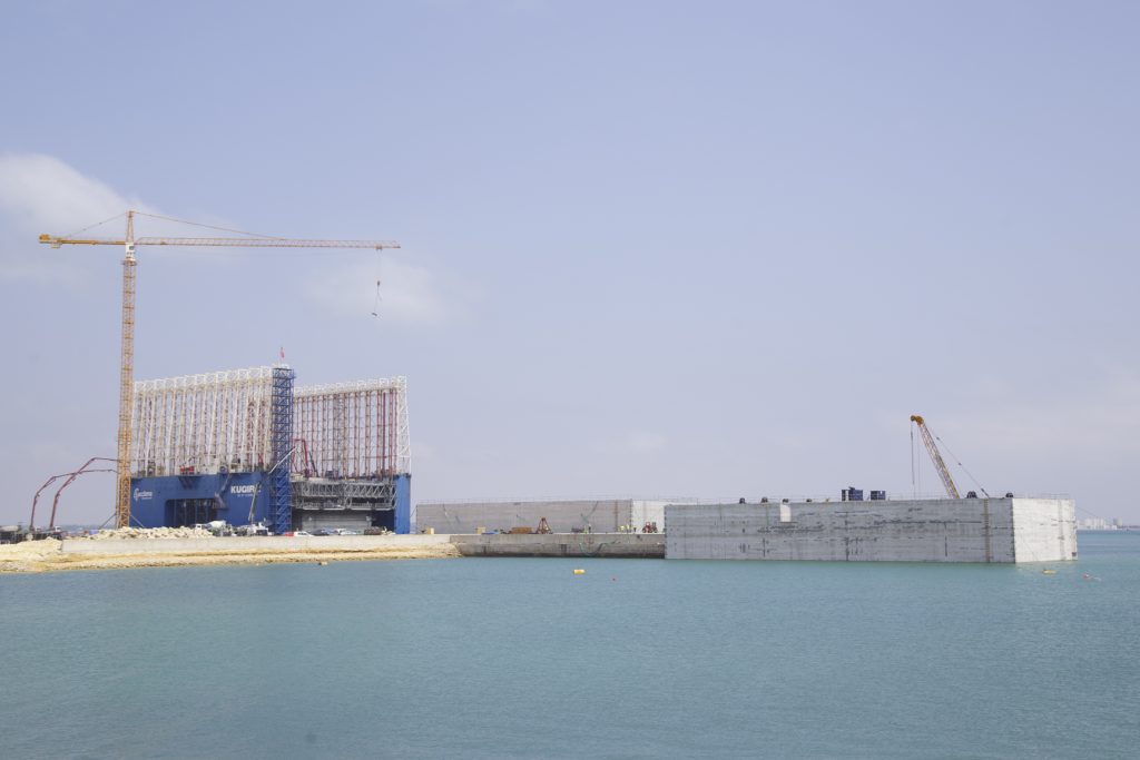 Mientras tanto se continua con la fabricación del resto de los cajones, que se construyen con un innovador cemento ecológico que reduce las emisiones de CO2 entre un 30 y 50 por ciento respecto a otros materiales ordinarios, y que llegará a su ecuador durante el fin de semana con la botadura del cuarto de ellos. También continúan los trabajos de preparación de la banqueta que permita colocarlos según se vayan fabricando.