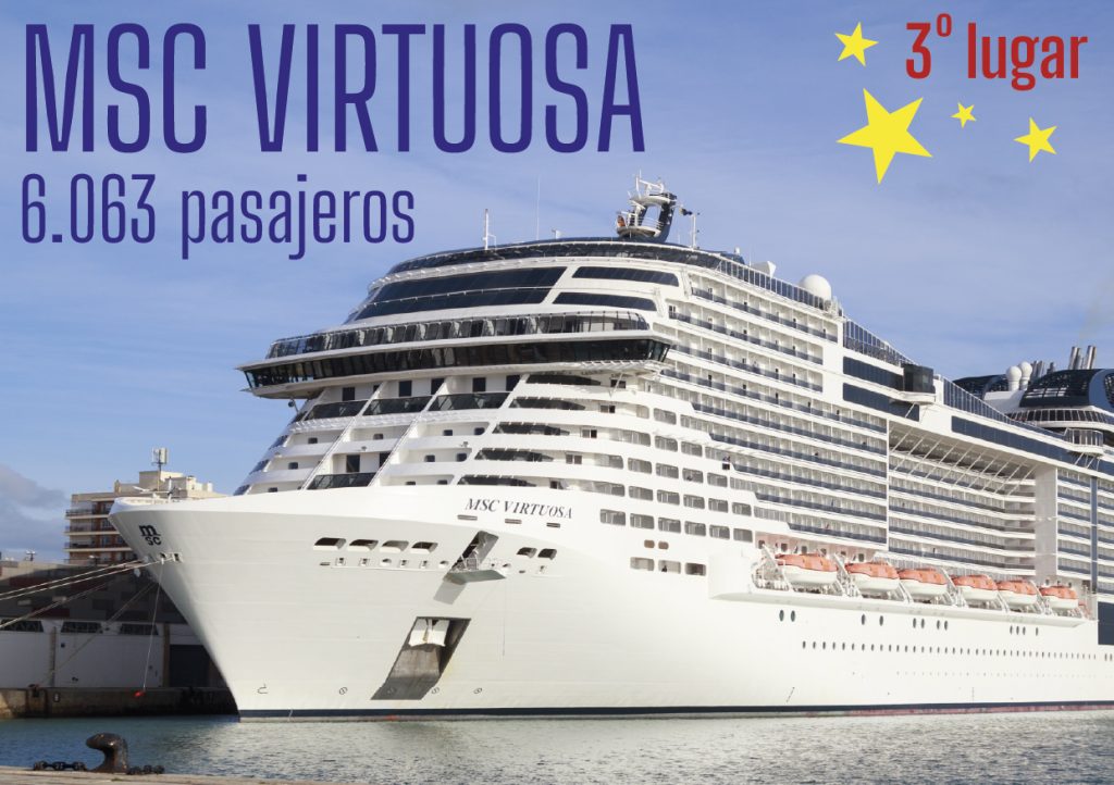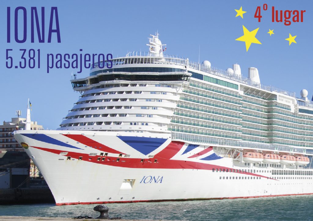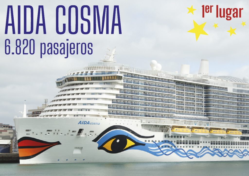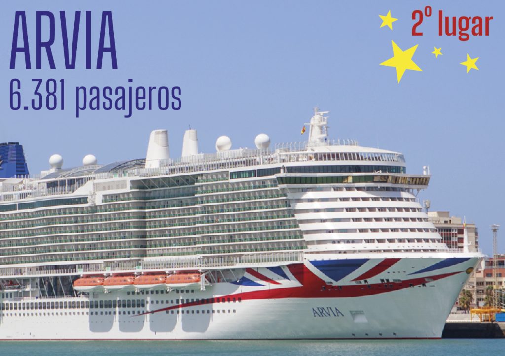 En consecuencia, el tamaño de los buques arribados a puerto también ha descendido en un 10 por ciento, con 25.223.217 unidades en total. Por su parte, la cifra media de pasajeros por buque de crucero se sitúa en 1.815 cruceristas siendo el barco con más pasajeros el Aida Cosma con 6.820, seguido por el Arvia con 6.381 y en tercer lugar, por el MSC Virtuosa con 6.063.