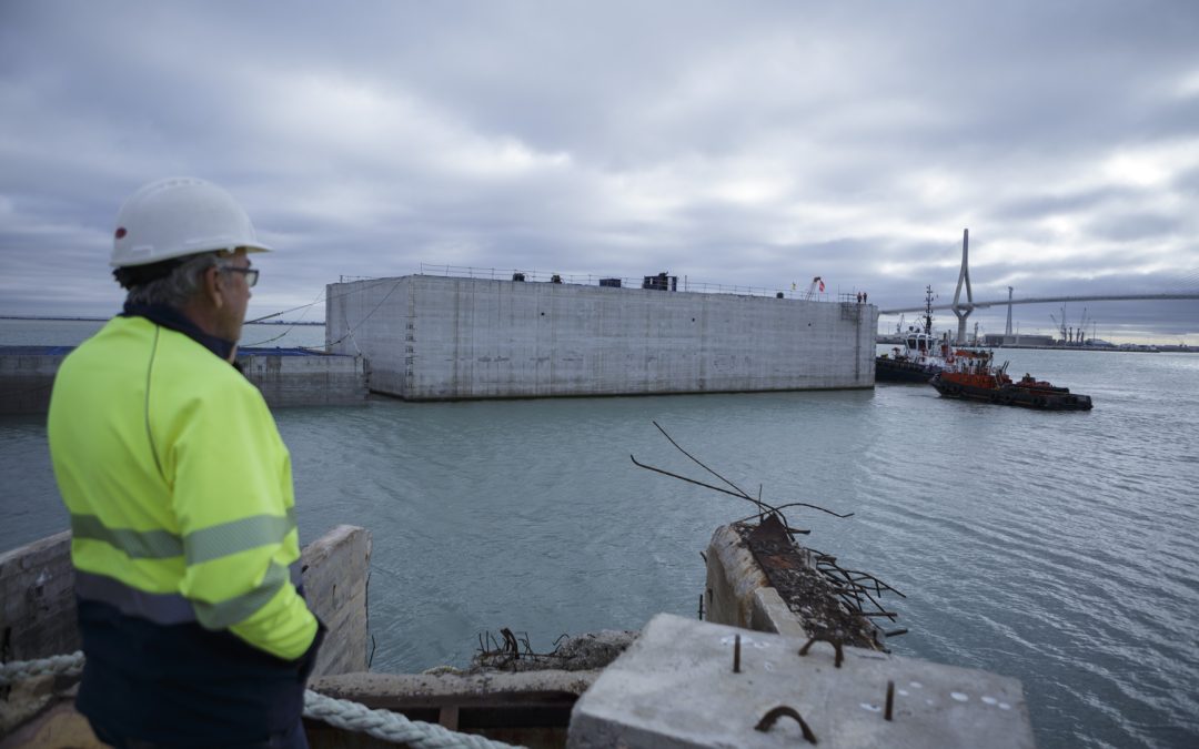 En poco más de tres meses, se han construido, flotado y colocado los ocho bloques de hormigón con los que se ha recrecido en 510,48 metros línea de atraque del Muelle de La Galeona, a razón de 63,68 metros de eslora por 24 metros de manga en el fuste (3 más en la solera) y 20,5 metros de puntal de cada cajón.