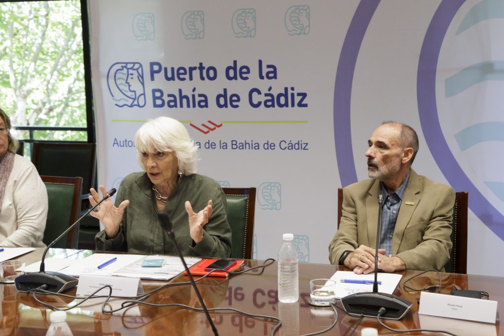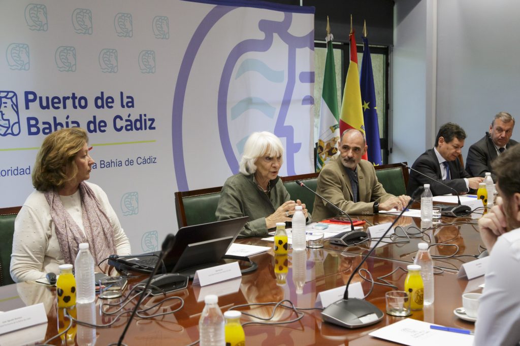 Viernes, 26 de abril de 2024. La presidenta de la Autoridad Portuaria de la Bahía de Cádiz, Teófila Martínez, junto con el director, Agustín Romero; la jefa del Departamento Comercial, Kate Bonner, y representantes de la Comunidad Portuaria de la Bahía de Cádiz han recibido esta mañana al presidente de la Organización Mundial de Ciudades y Plataformas Logísticas (OMCPL), Ricardo Partal Silva.