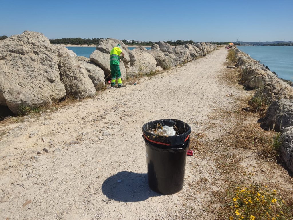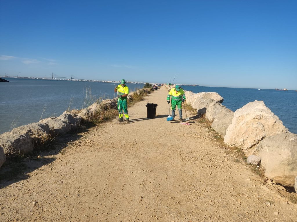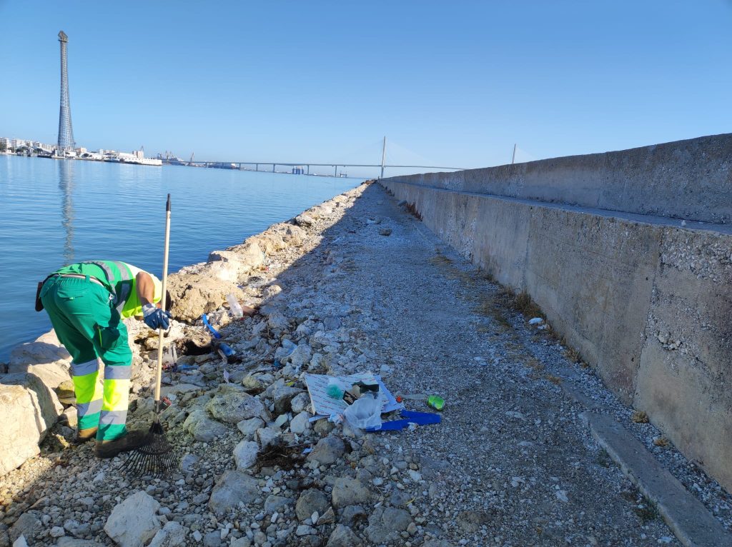 En total se han recogido 218 bolsas de basura con un peso total de 1.691 kilos, entre residuos sólidos, voluminosos y desbroce de hierbas. La actuación, iniciada a mediados de mes, ha intervenido en el espigón de La Puntilla, El Carmen y Valdelagrana en El Puerto de Santa María, así como en el espigón de Elcano y Mar de Leva y en la escollera del Paseo Pascual Pery, en Cádiz, donde también se han retirado escombros en dos tapas de galerías del muelle Reina Victoria.