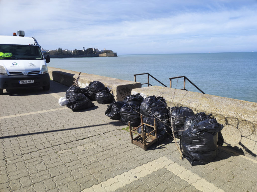 Jueves, 4 de mayo de 2023. La Autoridad Portuaria de la Bahía de Cádiz ha vuelto a realizar labores de limpieza y recogida de basuras en las distintas escolleras de la Bahía donde se han retirado un total de 1.136 kilos de residuos.