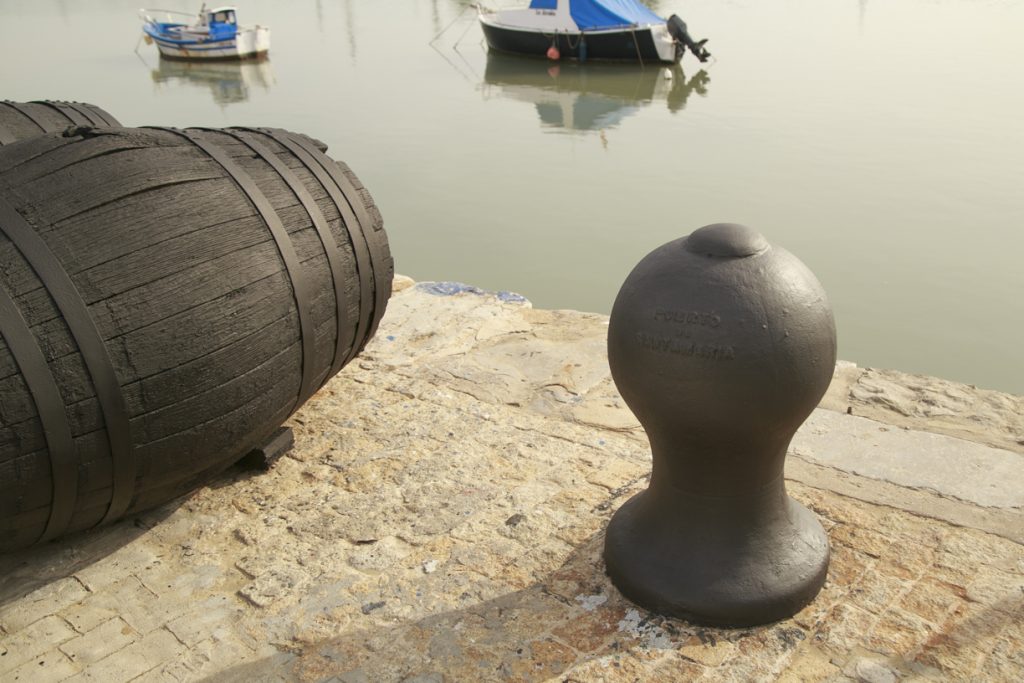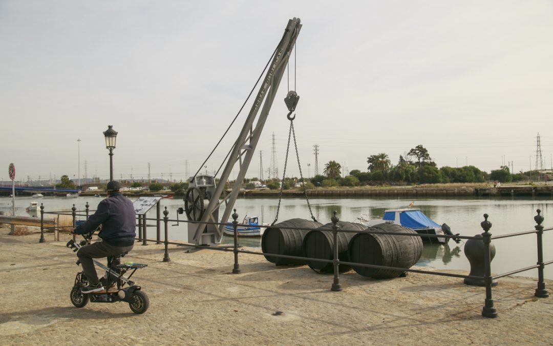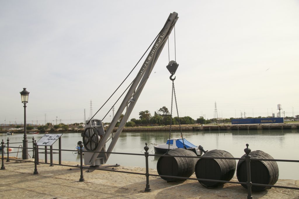 Se ha recuperación parte del patrimonio industrial y portuario de la ciudad. El conjunto lo forman una grúa manual de principios del siglo pasado, una farola de la época, un noray y varios toneles de vino (que era la carga tradicional), y están delimitados por la antigua barandilla del cantil del muelle. La autoría se le atribuye a un discípulo de Eiffel.