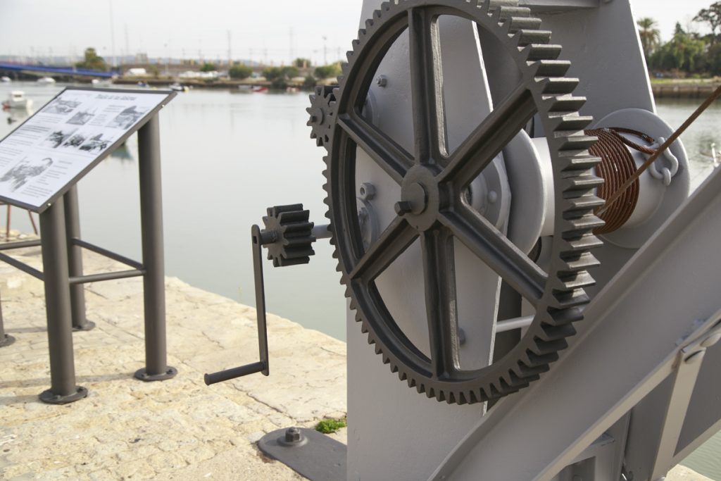 Dentro de las labores de recuperación se encontraba el desmontaje de dicha grúa que permanecía en la zona del Parque Calderón, la restauración en el taller de todos los elementos móviles, así como la reposición de los elementos que sean necesarios, el chorreado, imprimado y pintado con material epoxídico, la colocación de una placa con inscripción original y la recolocación en su ubicación originaria.