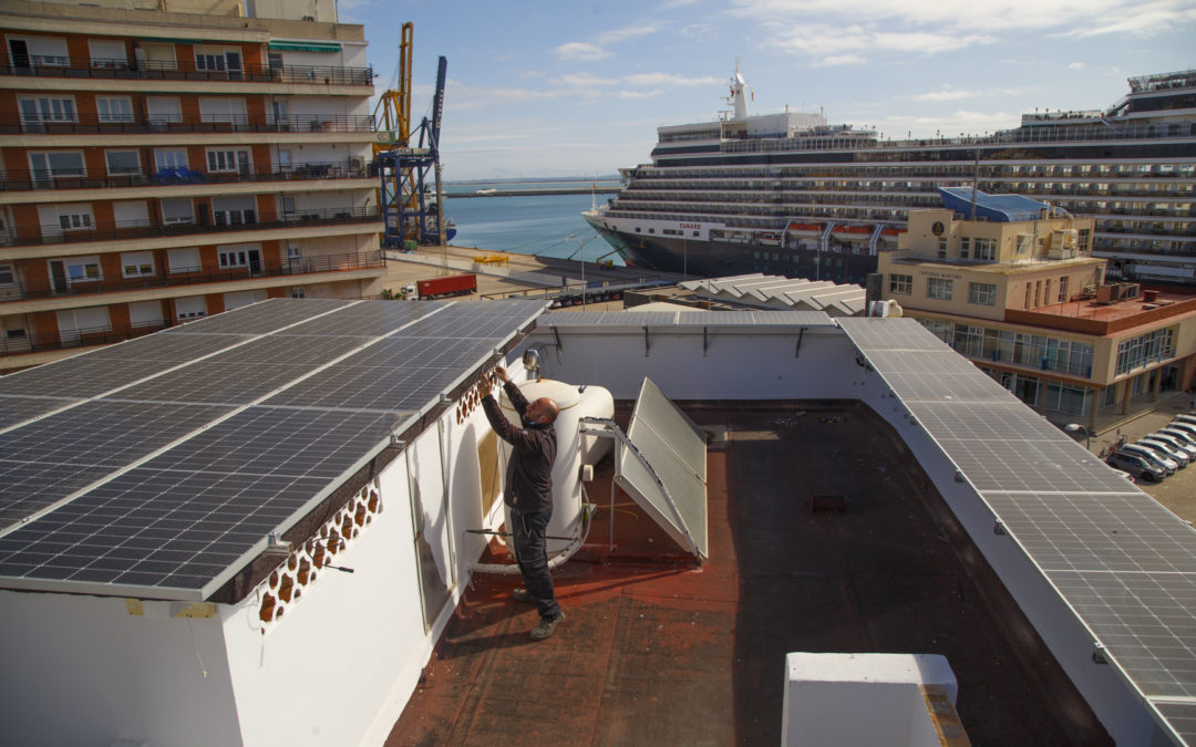 La planta fotovoltaica instalada en la terraza del edificio produce 50 kw de potencia y lo convierten desde ayer en un edificio parcialmente autónomo en consumo eléctrico